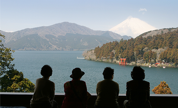 ケーブルカー(Jokkoku Cable – Panorama Terrace 1059)に乗って、山頂の展望台まで行きます。視界を遮るものはありません。天気がよければ富士山も見えます。